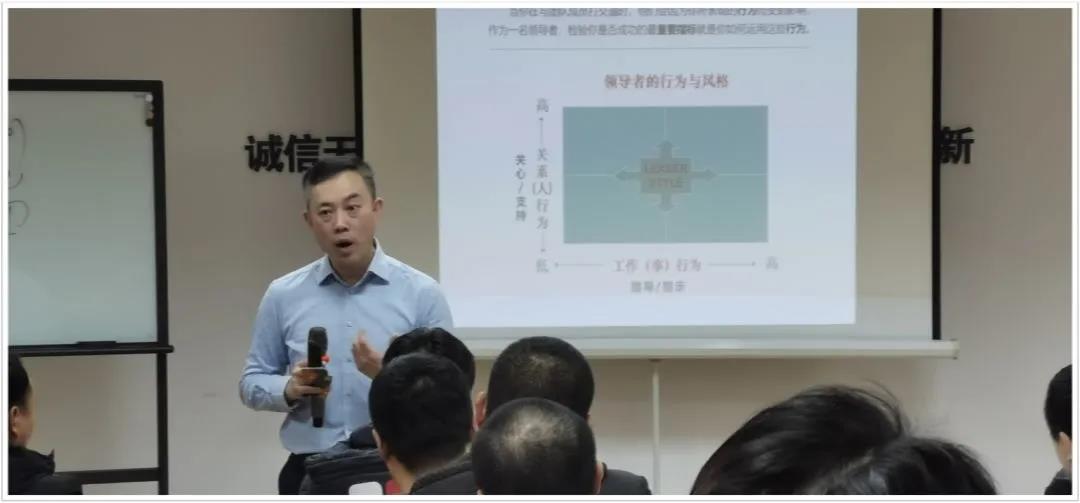在主持人精彩開場之后,潘鵬老師登臺開講。潘老師以自己豐富的知識體系為理論基礎(chǔ),結(jié)合公司的經(jīng)營特點(diǎn),運(yùn)用貫穿全場的實(shí)例和情景模擬,圍繞領(lǐng)導(dǎo)與管理的聯(lián)系與區(qū)別、成功領(lǐng)導(dǎo)者應(yīng)具備的技巧、領(lǐng)導(dǎo)風(fēng)格自測與分析、判斷員工的能力與意愿、情境領(lǐng)導(dǎo)方式的選擇等問題,深入淺出、化繁為簡地將培訓(xùn)要點(diǎn)層層剖析、娓娓道來。